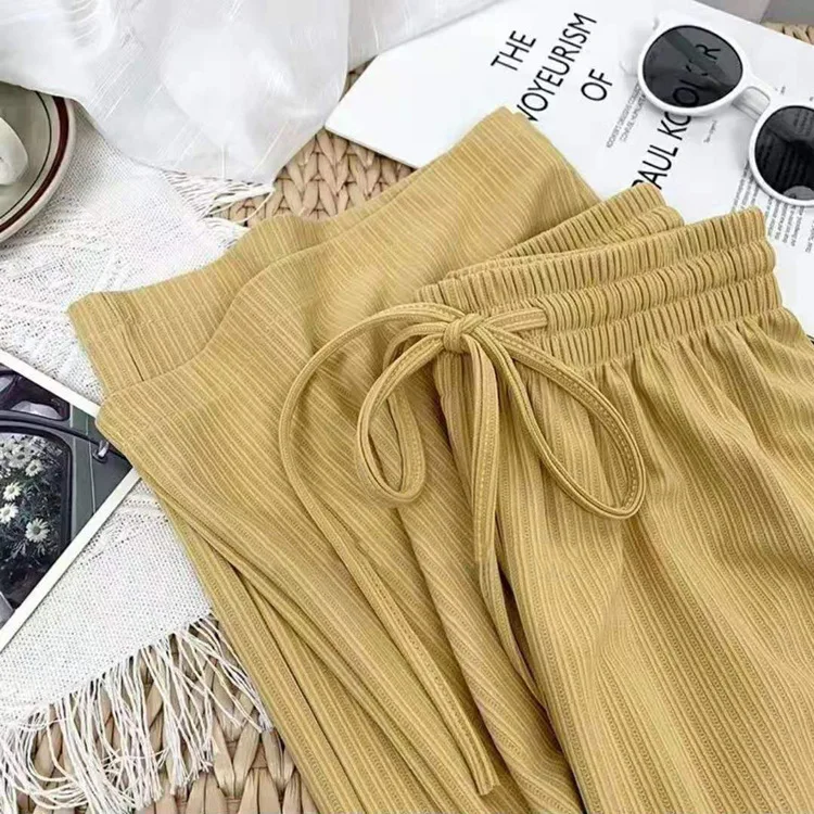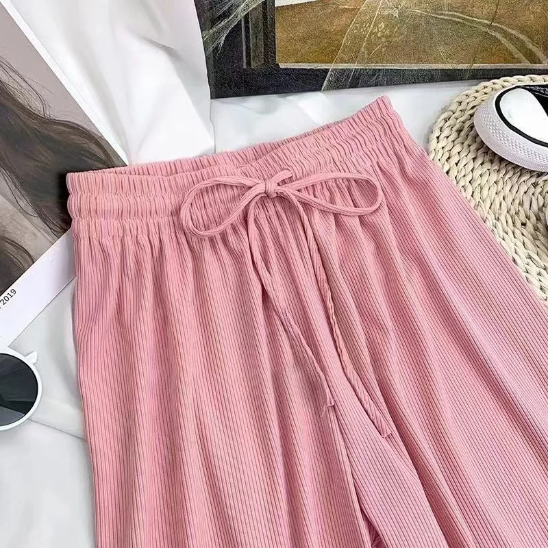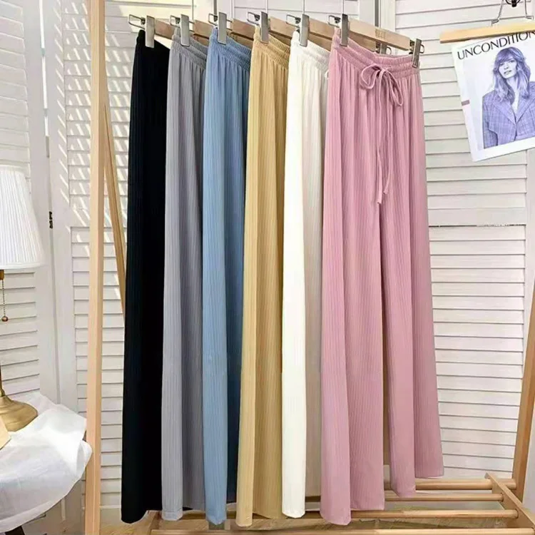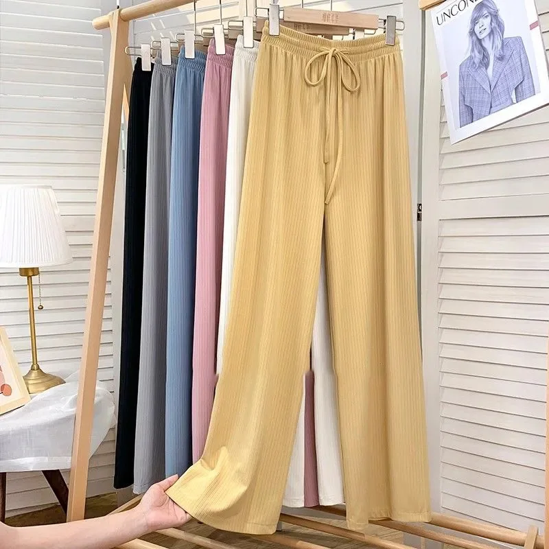 New Women Loose Ice Silk Pants High Waist Stretchy Wide Leg Trousers Spring Summer Lady Casual Long Pants